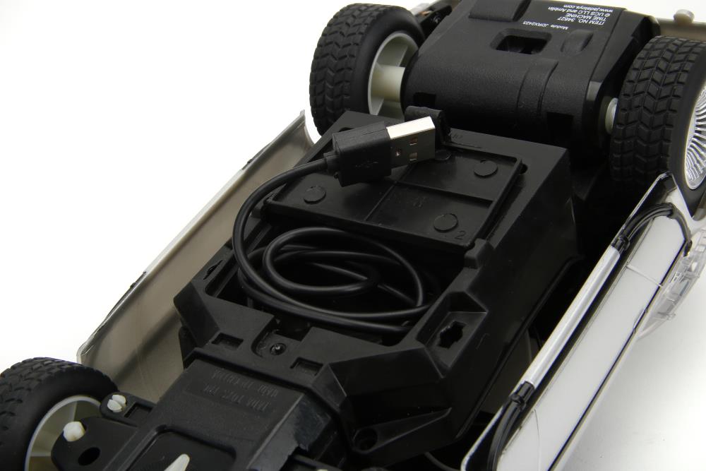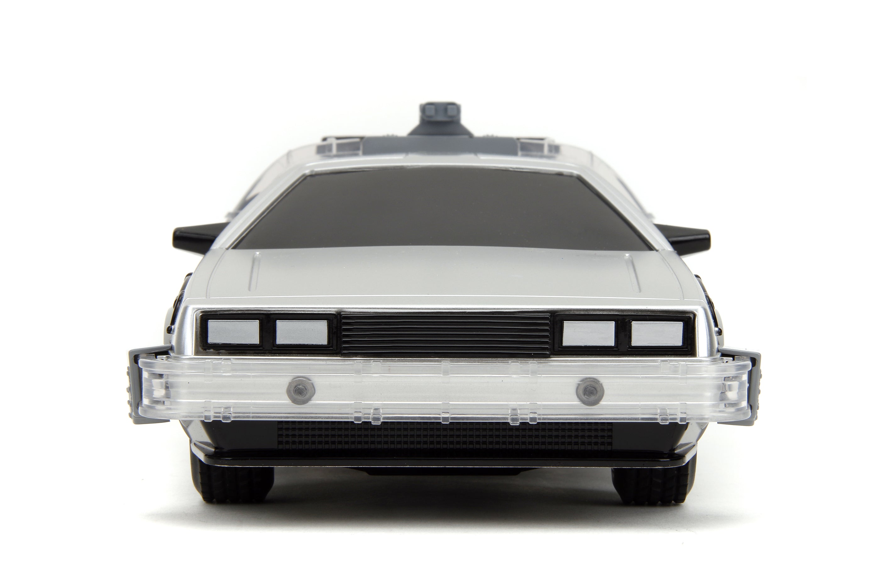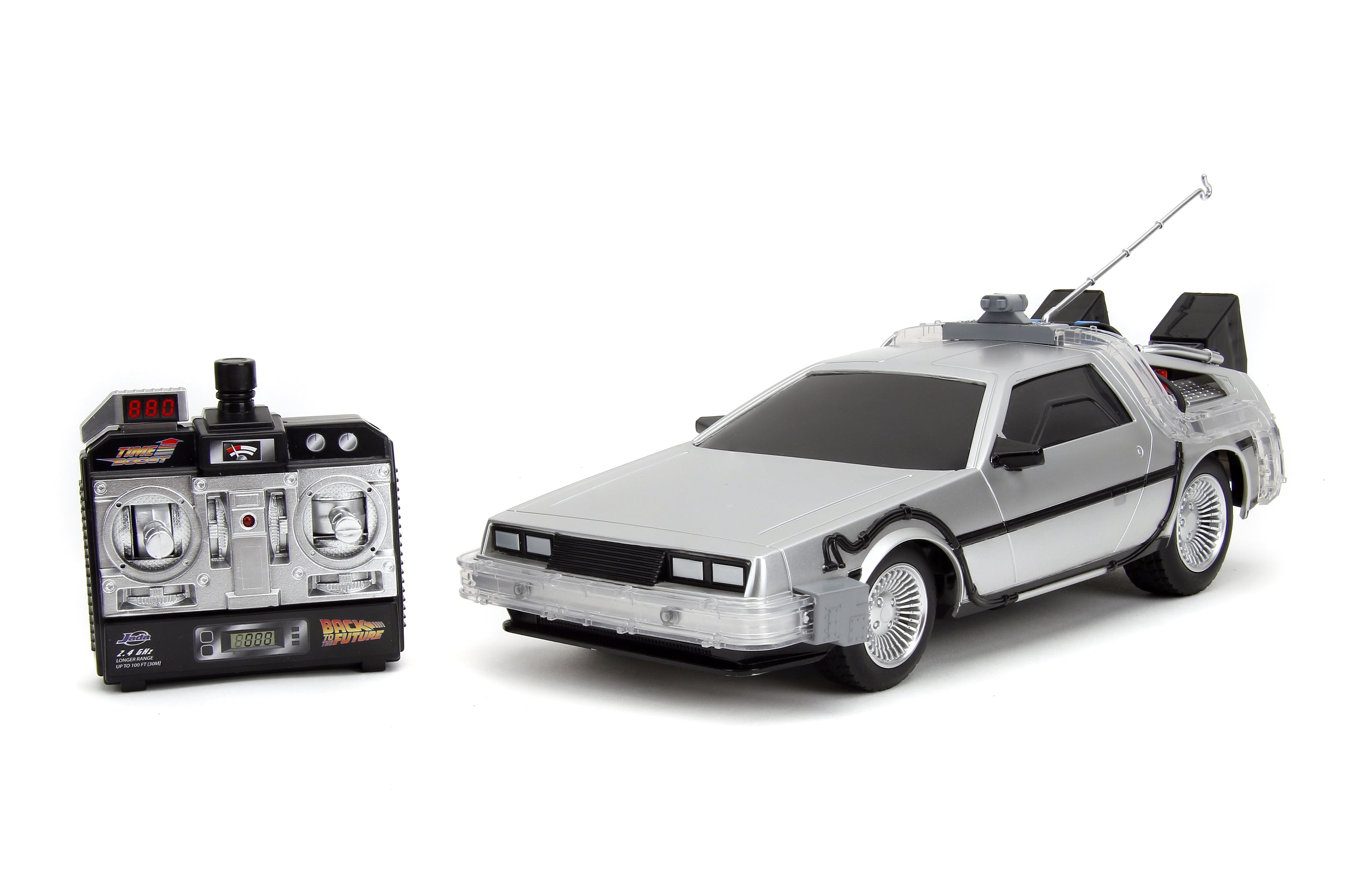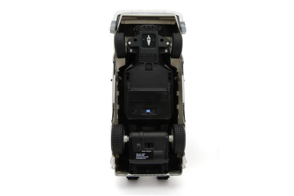 Hollywood Rides Back to the Future Time Machine R/C Vehicle. Travel through time with our Back to the Future RC in 1:16 scale. Press the Time Boost button to accelerate. Experience the thrill of the speed and lights, as you relive classic movie moments. This RC model isn't just a toy - it's a must-have for fans and collectors of all ages. Whether racing through Hill Valley or displaying it proudly, the nostalgia and fun RC experience make it unforgettable. Get ready to rewrite history with the Back to the Future RC.