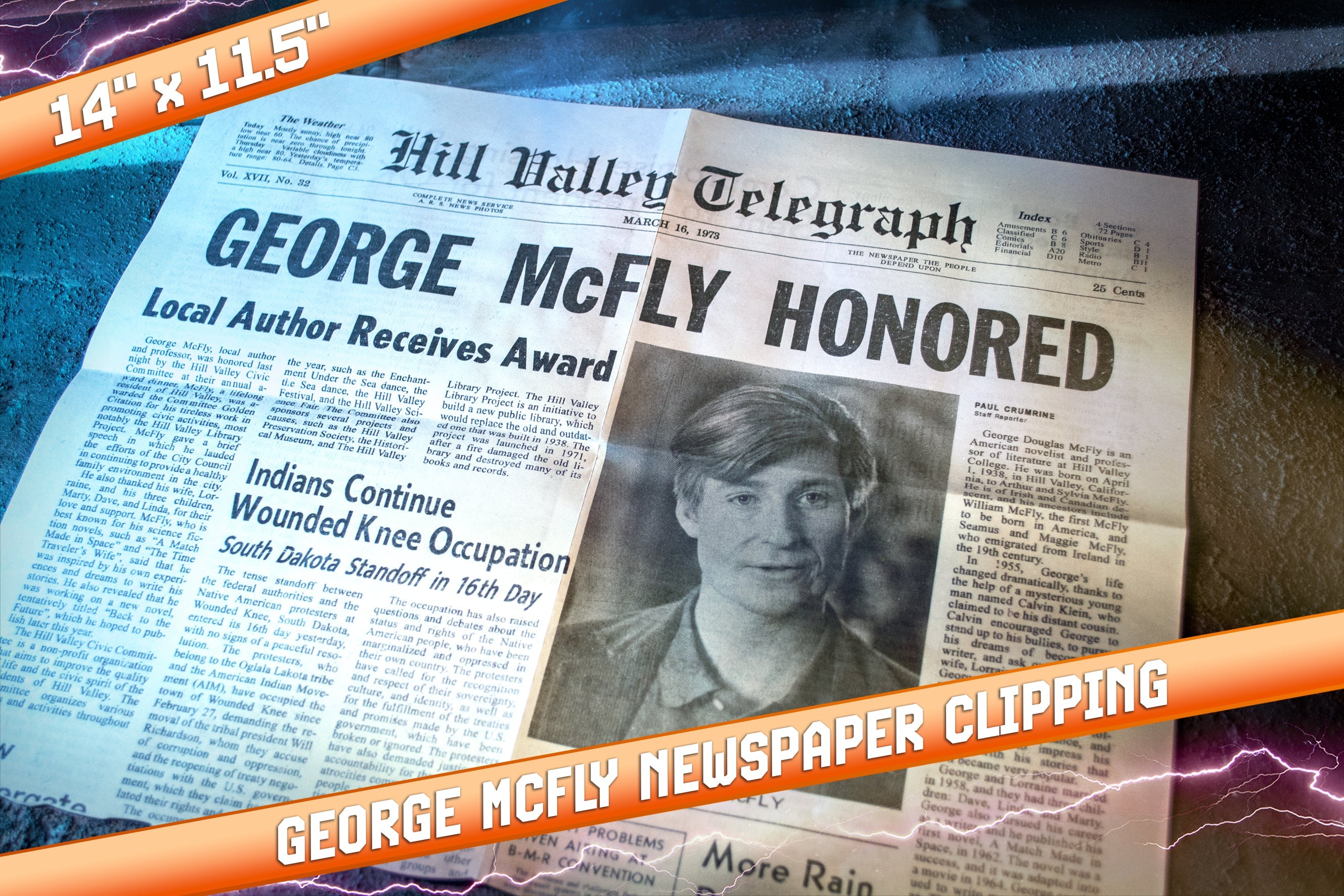 Hill Valley Telegraph "George McFly Honored" 1973 newspaper clipping