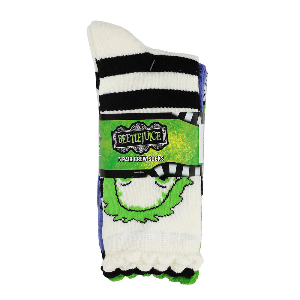 Embrace the whimsical world of Beetlejuice with our 5-Pack Women’s Ankle Socks, each featuring vibrant, playful designs inspired by the iconic character. Made from a soft, breathable blend of cotton, polyester, and spandex, these socks offer all-day comfort and a snug, non-slip fit. With unique graphics and his signature stripes, they add a touch of nostalgic fun to any outfit and are easy to care for—just toss them in the wash and enjoy their vibrant look day after day. Perfect for showcasing your Beetlejuice fandom in style!