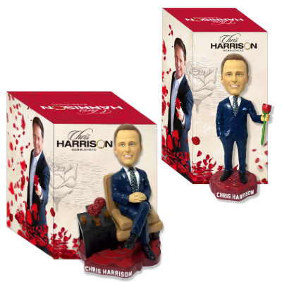 Order your Chris Harrison Bobbleheads before it's too late. Harrison has been the host of ABC’s hit romance/reality franchise “The Bachelor” and “The Bachelorette”. The first bobblehead features Harrison holding a removable rose that can be replaced with a real rose and the second features Harrison sitting on a chair next to a bouquet of roses and a group of candles, which light up.