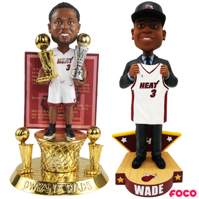 These bobbleheads commemorate Dwyane Wade's outstanding NBA career and jersey retirement.