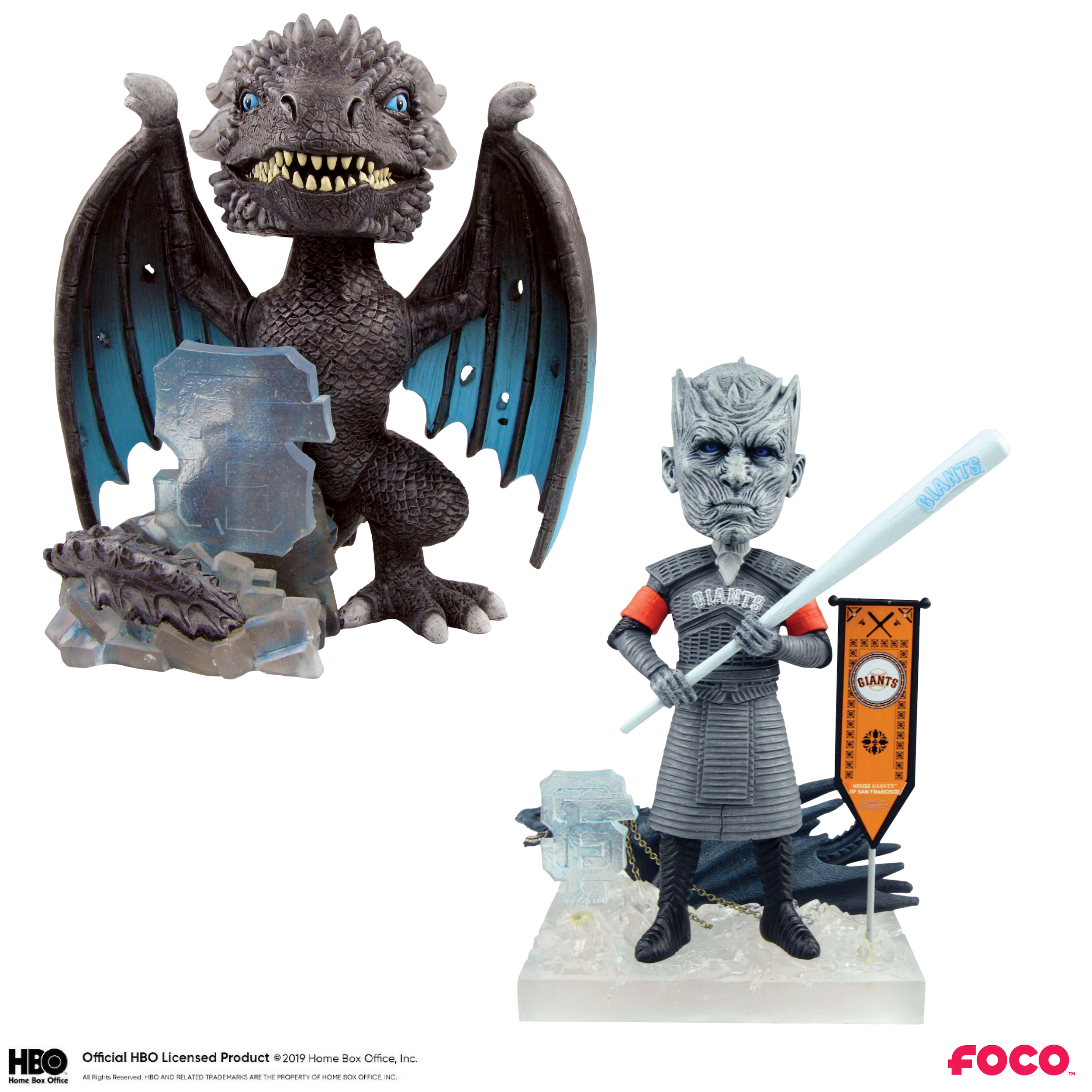 Order your MLB National League Game of Thrones Bobbleheads before it's too late. Multiple styles are available. Click here for the American League Game of Thrones Bobbleheads. The set includes the Mascot on Throne (if available), Night King and Ice Dragon Bobbleheads. They are officially licensed by the respective team, MLB and HBO.